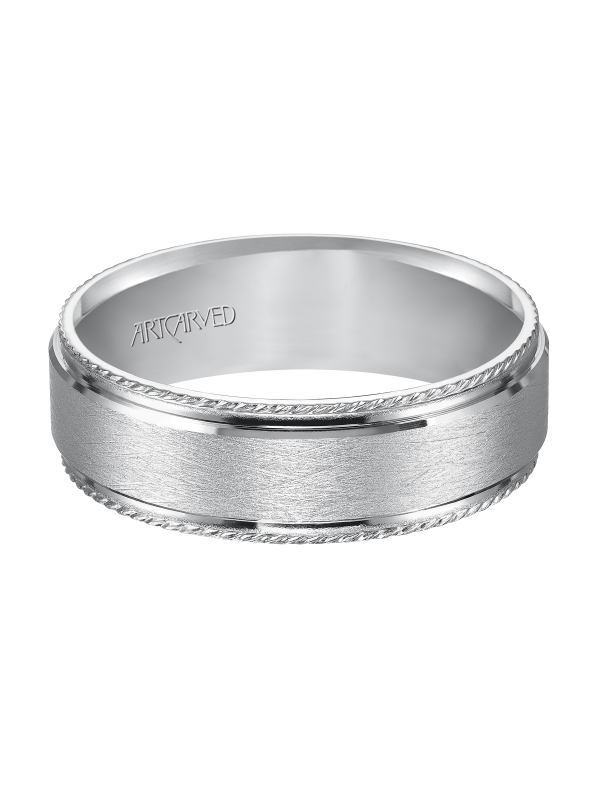 Wedding band with wire finish and rope accent - Price does not include center stone.