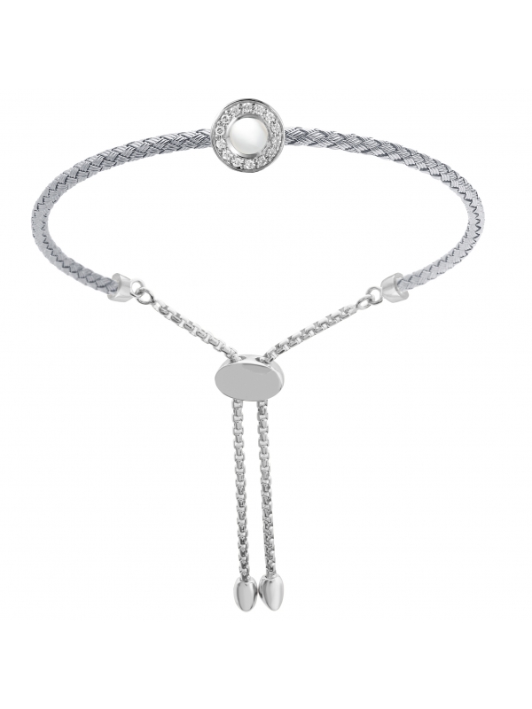 925 SS 3MM WOVEN MOP DBT & CZ FRIENDSHIP BRACELET RHODIUM FINISH
