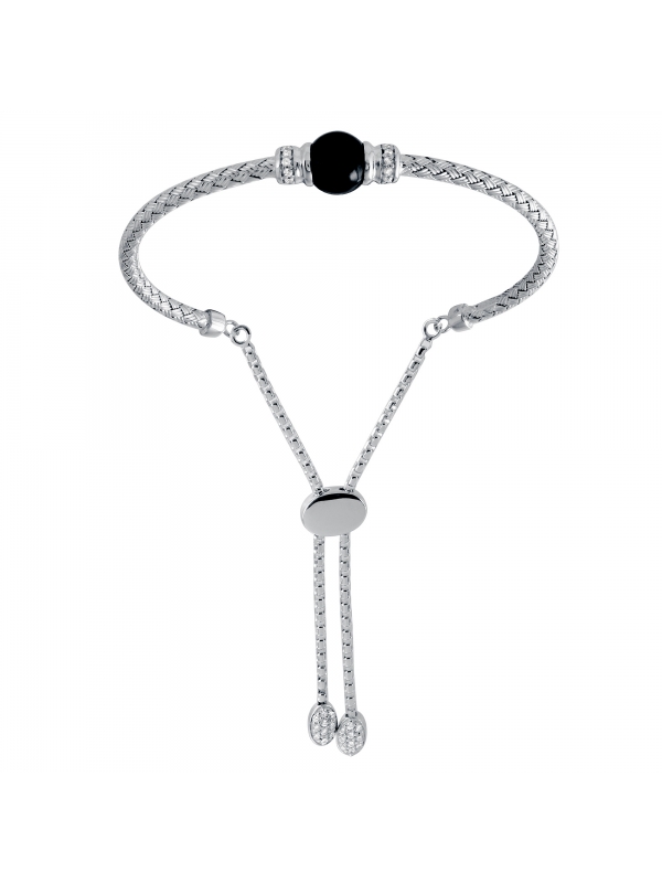 925 SS 3MM WOVEN ONYX & CZ FRIENDSHIP BRACELET RHODIUM FINISH