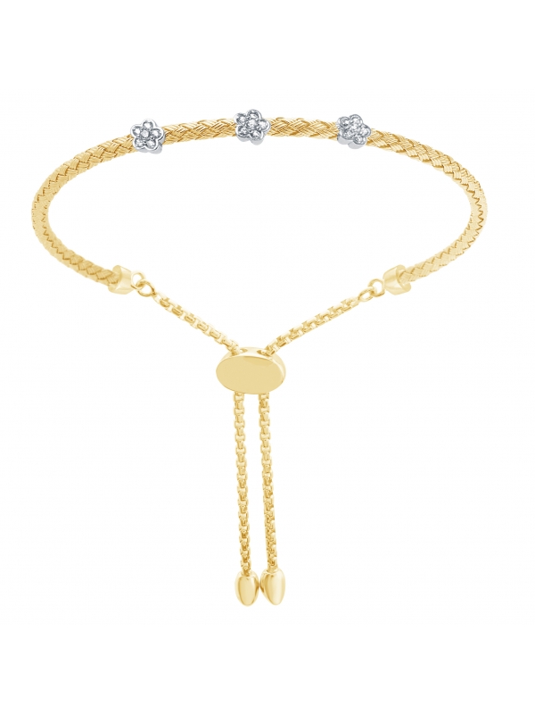925 SS 3MM WOVEN CZ FRIENDSHIP BRACELET 18K YG AND RHODIUM FINISH
