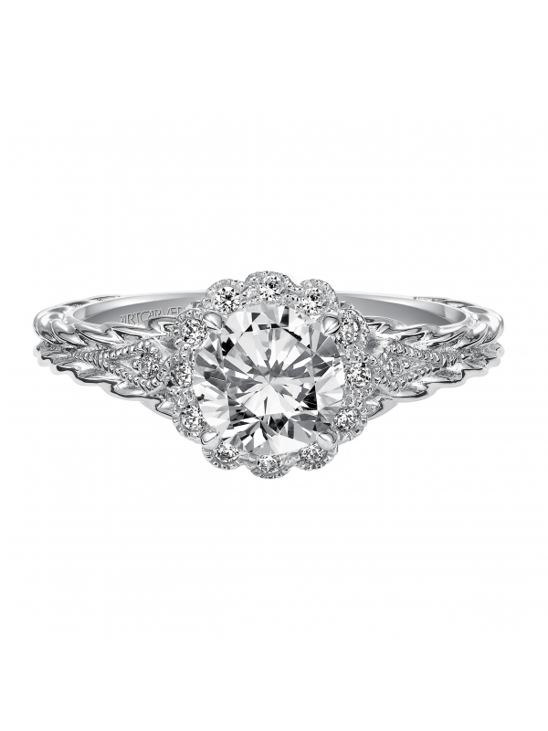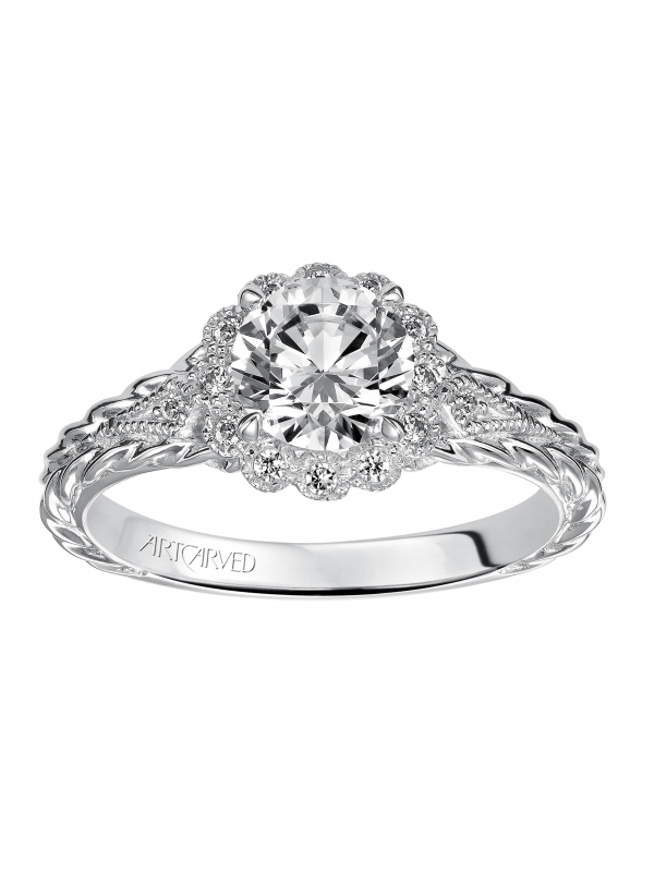 Diamond Halo engagement ring with milgrain detail on the side, also featuring our double rope design Available In: Platinum,Palladium - Price does not include center stone.