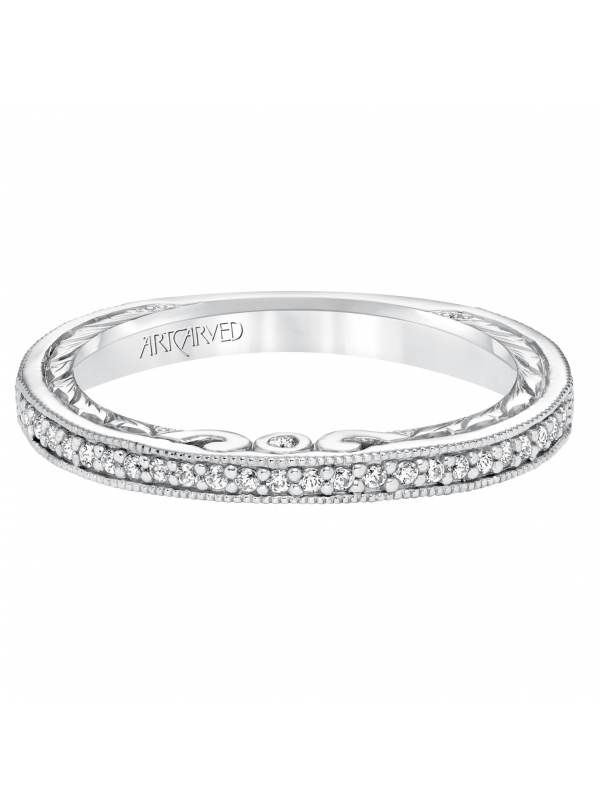 Diamond Hand Engraved and Milgrain Wedding Band - Price does not include center stone.