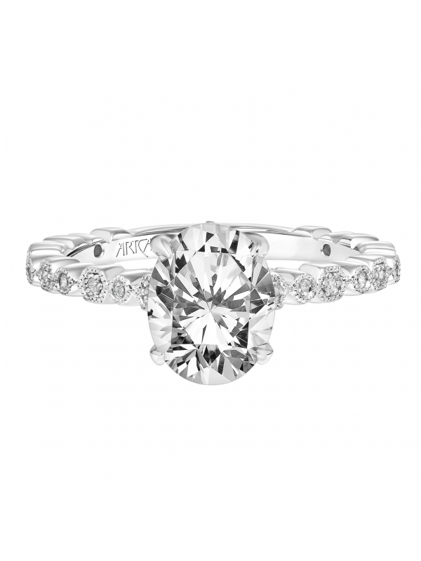 Vintage Oval Diamond Engagement Ring with Multi-Shaped Diamond and Milgrain Shank - Price does not include center stone.