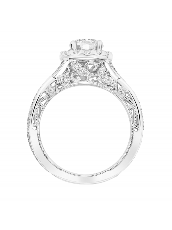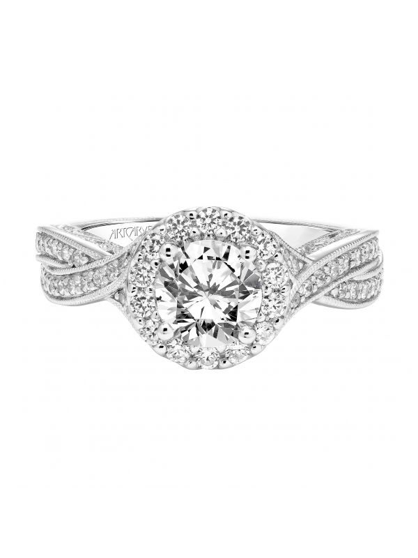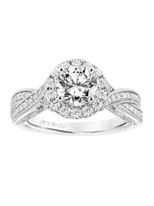 Vintage Diamond Halo Engagement Ring with Twisted Diamond Shank, Floral Filigree with Diamond Accents and Hand Milgrain Detail - Price does not include center stone.