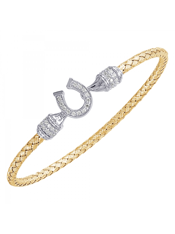 925 SS 3MM WOVEN HORSE SHOE HOOK CZ BANGLE 18K YG AND RHODIUM FINISH