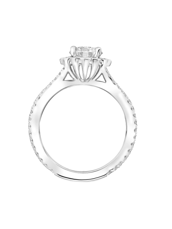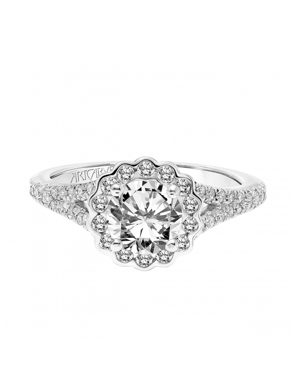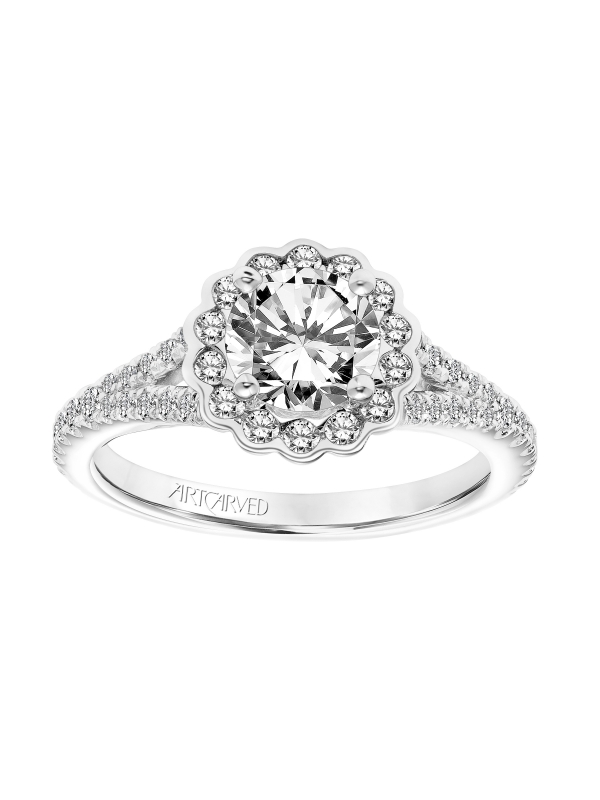 Round Floral Halo Diamond Engagement Ring with Split Diamond Shank and Open Polished Basket - Price does not include center stone.