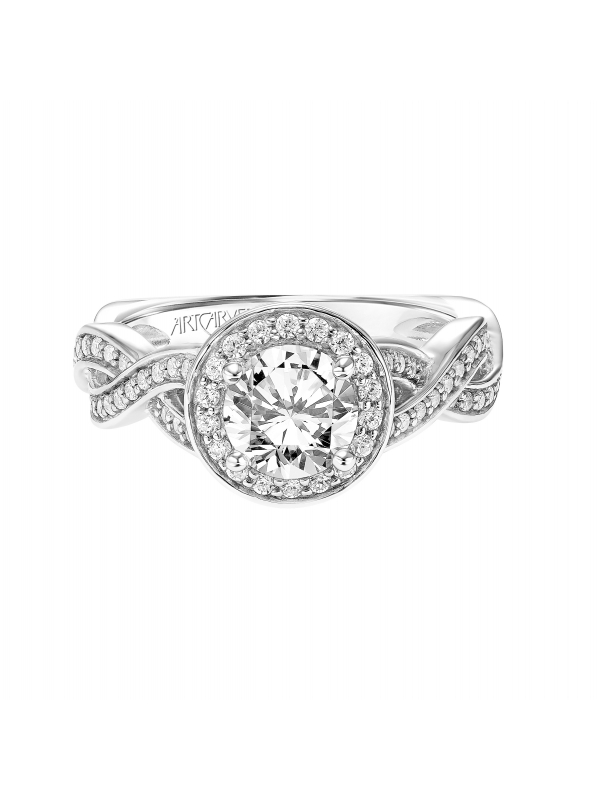 Contemporary Diamond Halo Engagement Ring with Open Twist Prong in Wall Setting - Price does not include center stone.