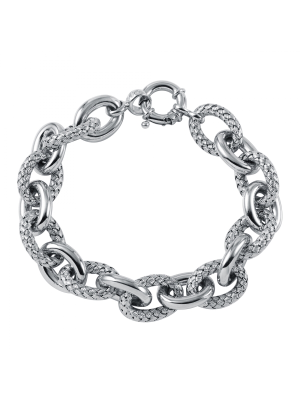925 SS WOVEN OVAL MESH AND POLISHED LINK BRACELET 8.0" RHODIUM FINISH