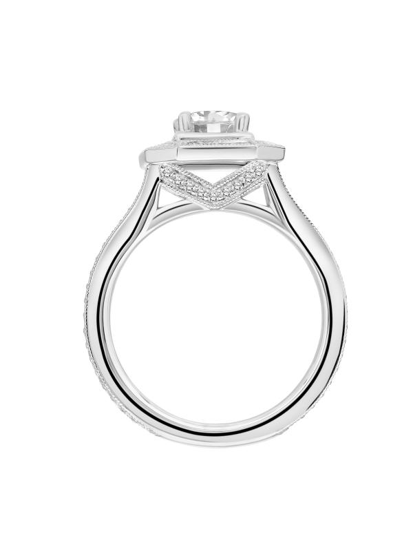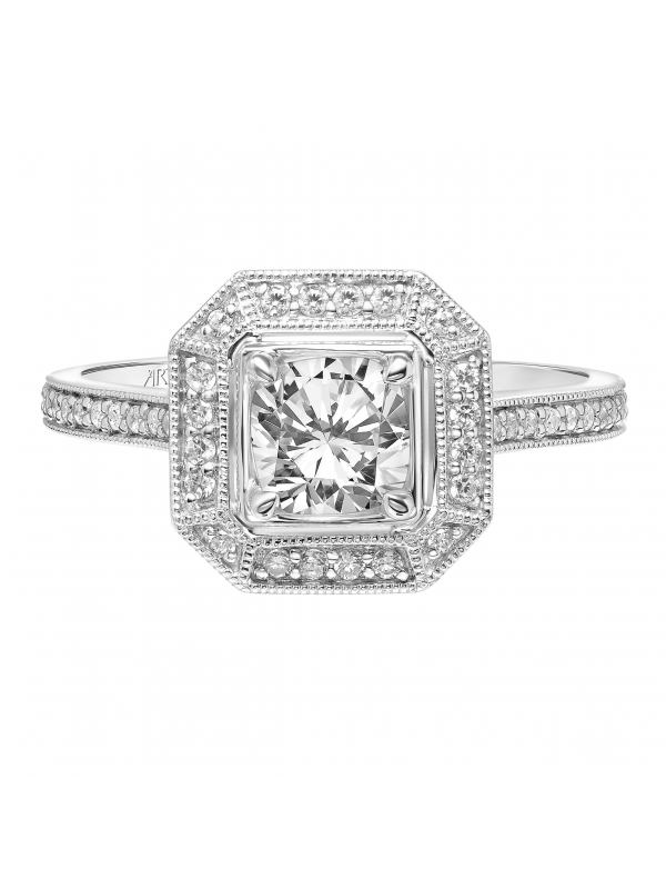 Vintage Diamond Engagement Ring with Milgrain Accented Diamond Halo and Milgrain Accented Diamond Gallery and Shank - Price does not include center stone.