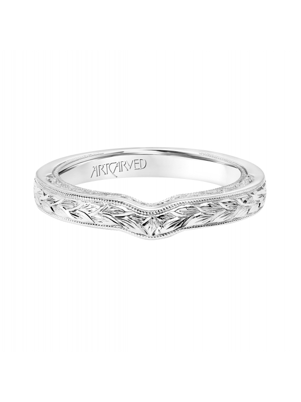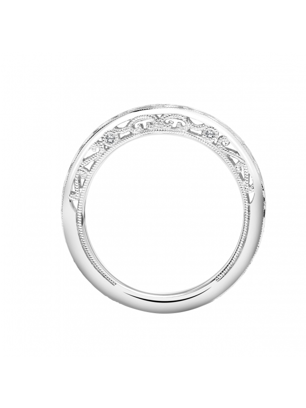 Vintage Hand Engraved and Milgrain Wedding Band with Diamond Accented Filigree and Hand Milgrain Detail to Match 31-V792 - Price does not include center stone.