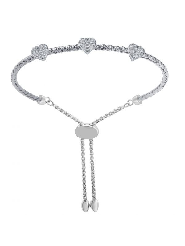 925 SS 3MM WOVEN CZ FRIENDSHIP BRACELET RHODIUM FINISH