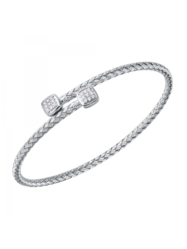 925 SS 3MM WOVEN CUSHION BYPASS CZ CUFF RHODIUM FINISH