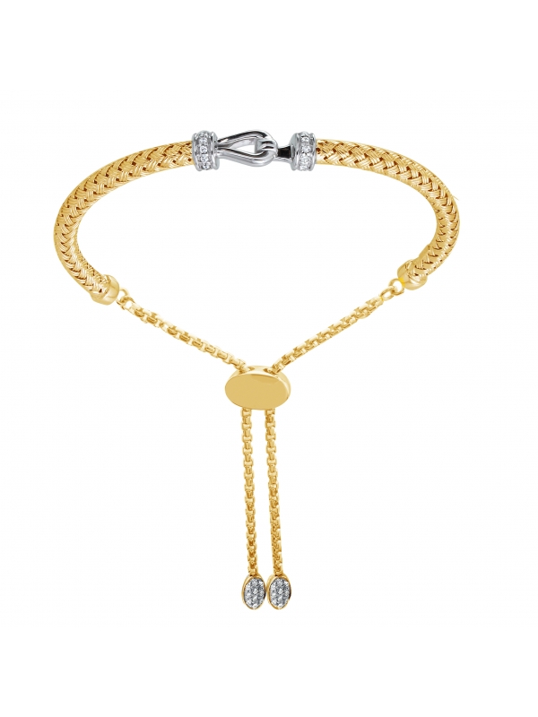 925 SS 3MM WOVEN CZ HOOK FRIENDSHIP BRACELET 18K YG AND RHODIUM FINISH