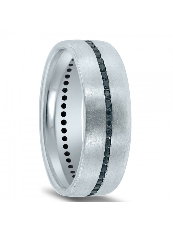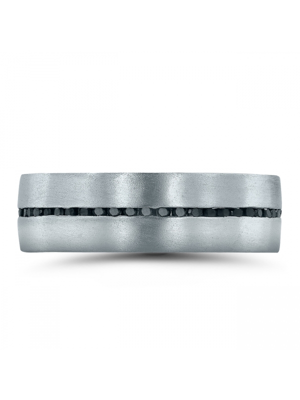 Mens 7mm wide wedding band with 5/5 ctw. Round black diamonds.
