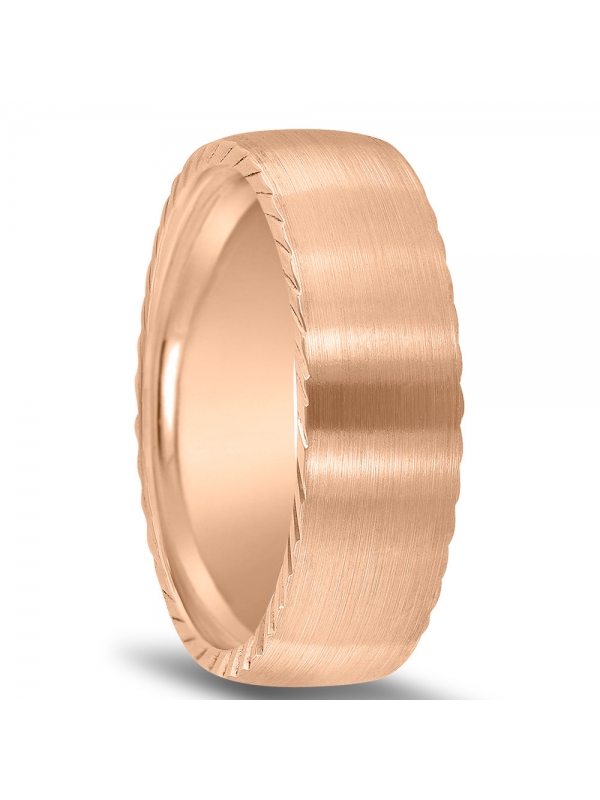 Mens 7mm wide wedding band with frost finish cut coin edge.