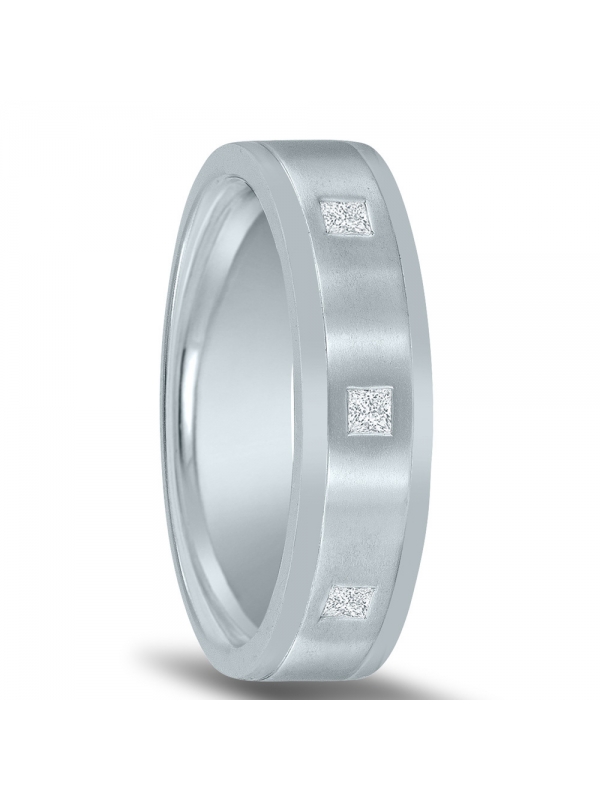 Mens 6mm wide diamond wedding band with 3/8 ctw. evenly spaced princess cut diamonds (8 stones total)