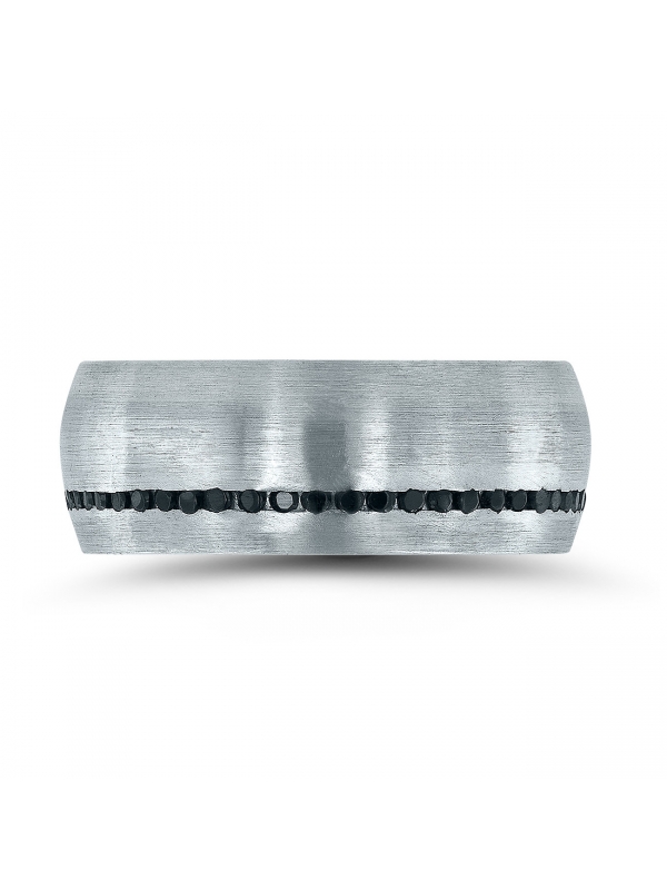 Mens 9mm wide wedding band set with approximately 5/8 carat of verical set black diamonds (53 stones total - may vary per size).