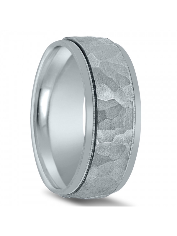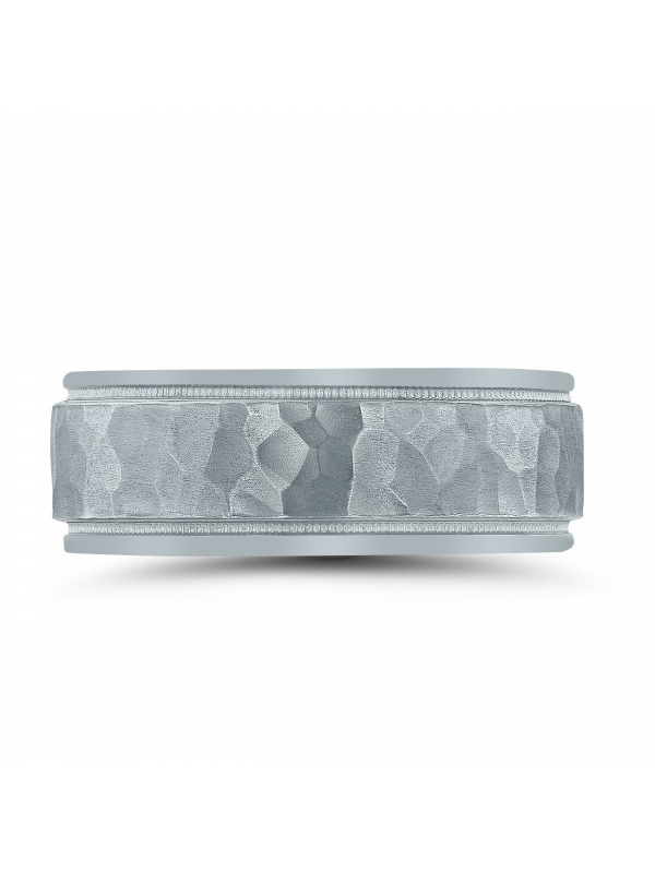 Mens 8mm wide wedding band with hammered finish and bright edges (with milgrain).