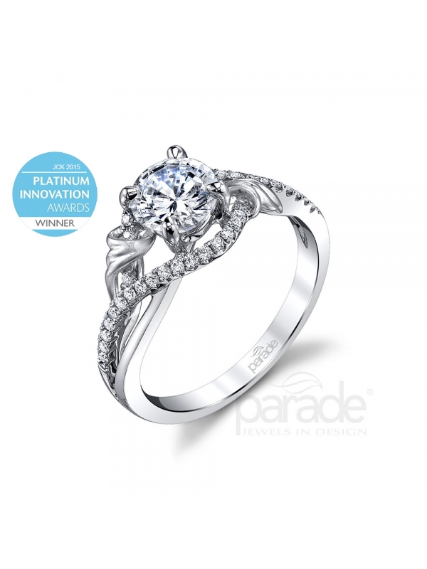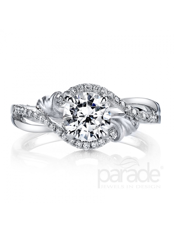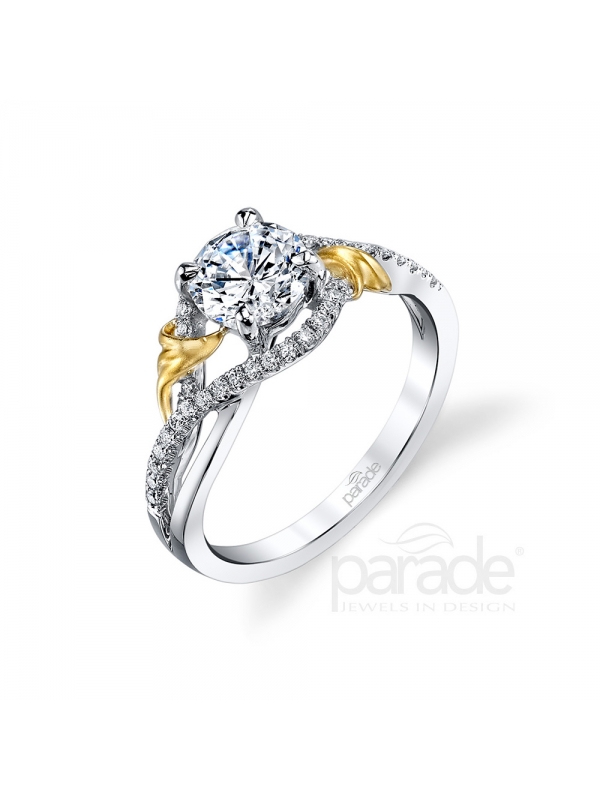 Delicate bands of white diamonds and brushed gold flourishes complement a sparkling center stone.