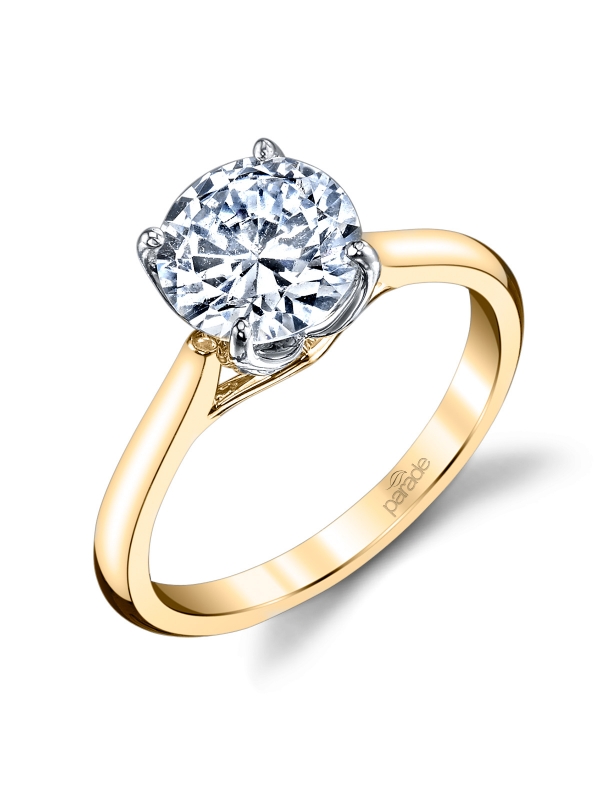 The LYRIA Signature Crown atop a gleaming band of ™®high polished 18K gold adds a touch of femininity™®to a classic and timeless solitaire.