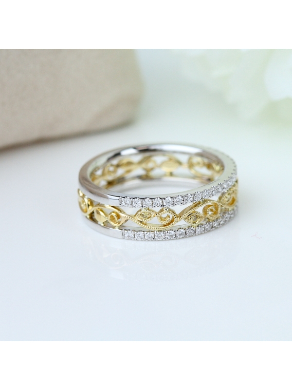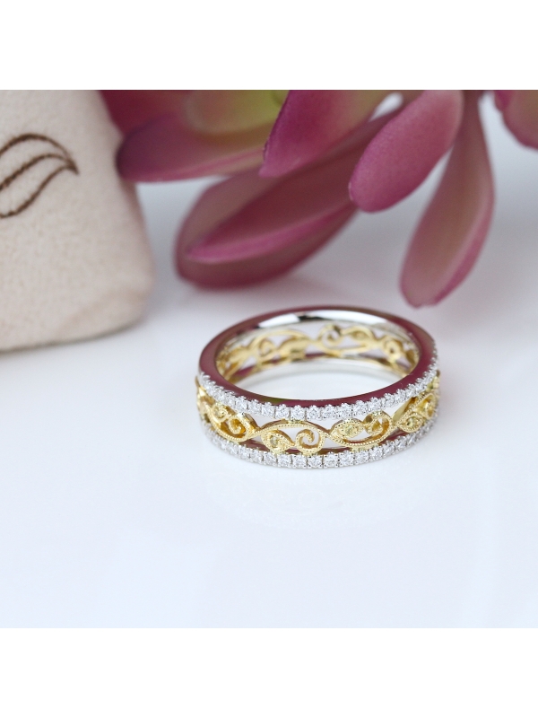 An eternity band featuring waves of gold accented by yellow diamonds
