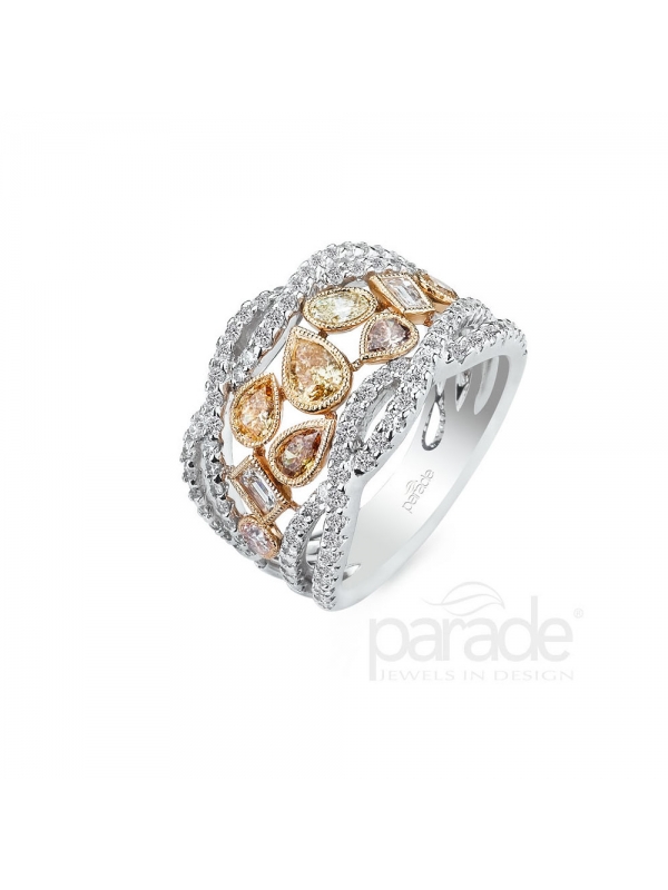 JCK Award Winner: Colored Diamond Jewelry Category 2012 Interlaced white diamonds enclose the mosaic of colorful natural diamonds in this bold, new design from the award-winning Reverie Collection.