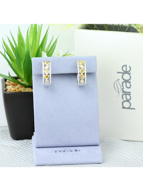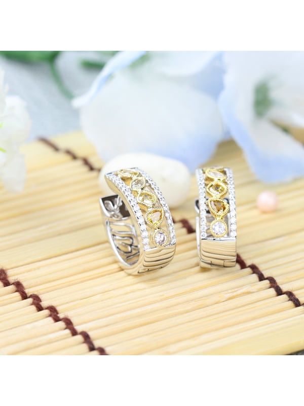 A stunning assortment of natural fancy colored diamonds are carefully hand-picked to complete this classic set of diamond hoop earrings.