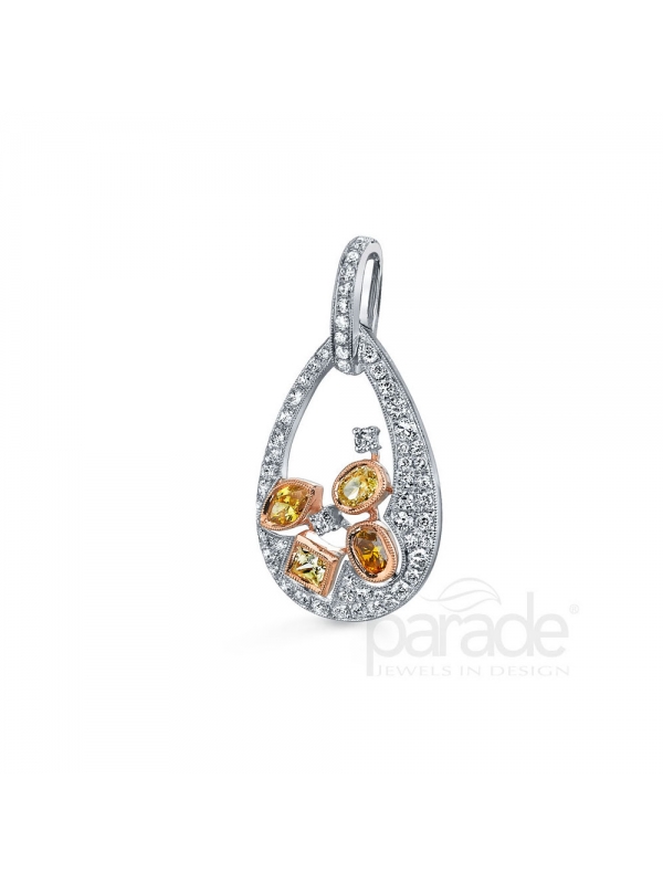 A playful mixture of fancy diamonds boasts a spectrum of colors in this pendant from Parade Design's award-winning Reverie Collection. Rich golden tones, deep amber and flashes of champagne are further enhanced by a medley of shapes and milgrain detail.
