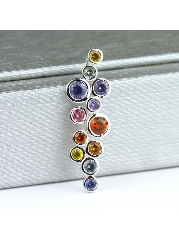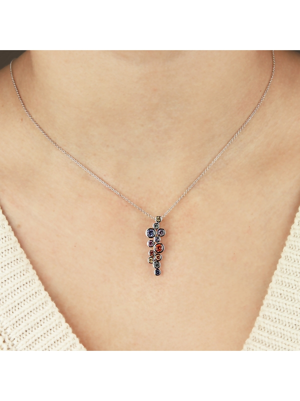 A carnival of colors This cascading pendant features a full spectrum of colorful sapphires.