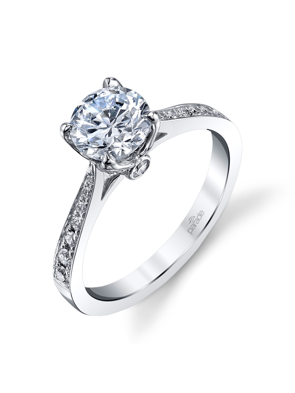 Shimmering white diamonds climb along tapered bands of gleaming gold towards a brilliant center stone set in the LYRIA SIGNATURE CROWN, complemented by peek-a-boo diamonds in this timeless stunner from the New Classic Bridal collection.