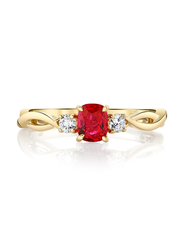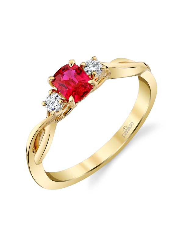 3-Stone Diamond Ring Featuring a Pigeon Blood Cushion Ruby