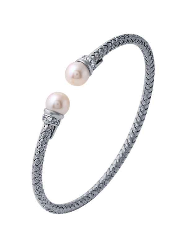 925 SS 4MM WOVEN FRESHWATER PEARL & CZ CUFF RHODIUM FINISH