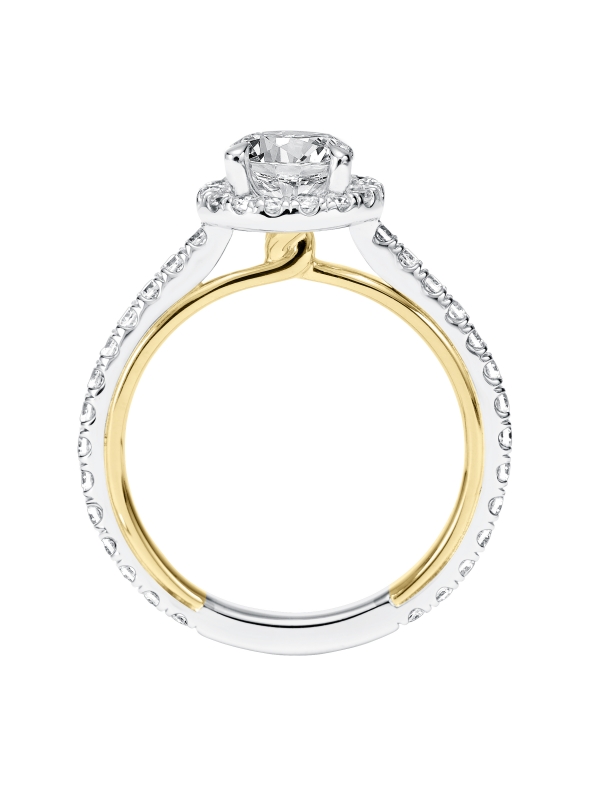 Contemporary Diamond Halo Engagement Ring with Diamond Shank and Inside Twist Accent - Price does not include center stone.