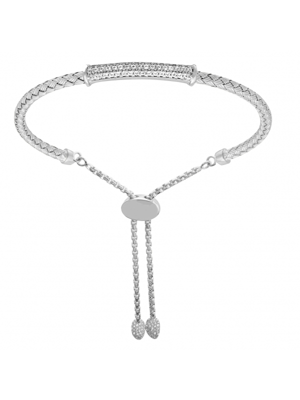 925 SS 3MM WOVEN CZ FRIENDSHIP BRACELET RHODIUM FINISH