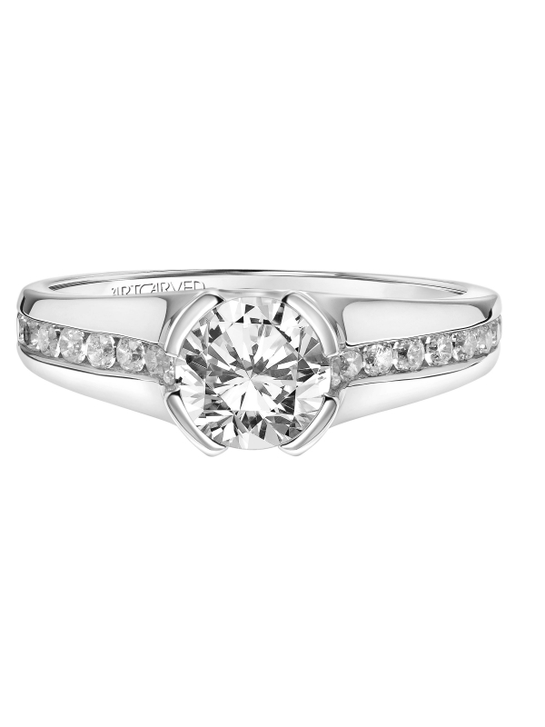 Half Bezel Diamond Engagement Ring with Channel Set Diamonds and Polished Shank - Price does not include center stone.