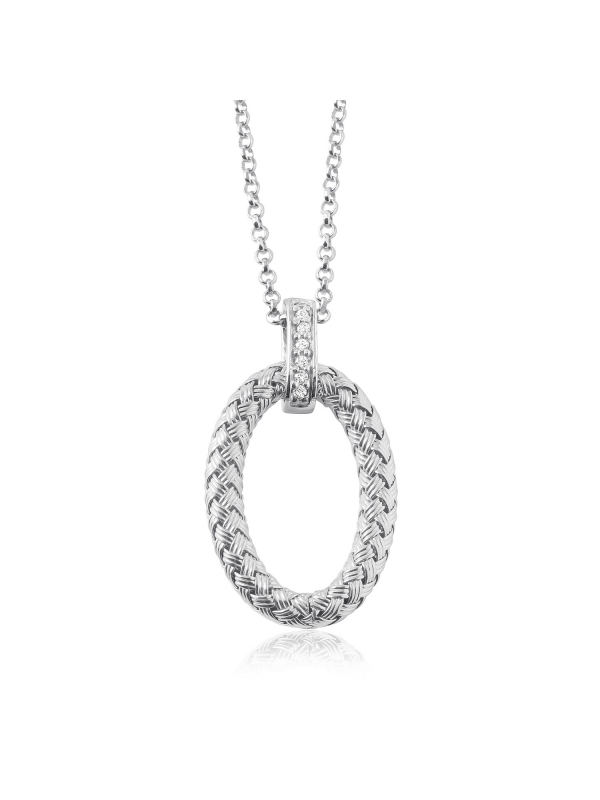 925 SS OVAL WOVEN 18" CZ PENDANT RHODIUM FINISH