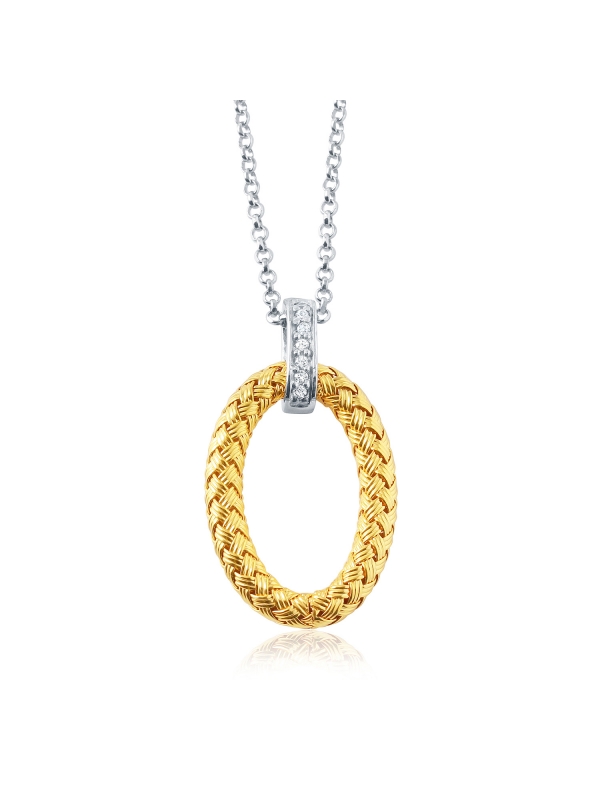 925 SS OVAL WOVEN 18" CZ PENDANT 18K YG AND RHODIUM FINISH