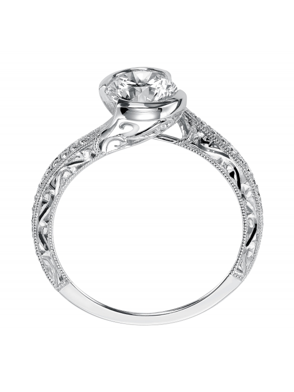 Half Bezel Bypass Hand Engraved with Milgrain and Diamond Accent Available In: Platinum,Palladium - Price does not include center stone.