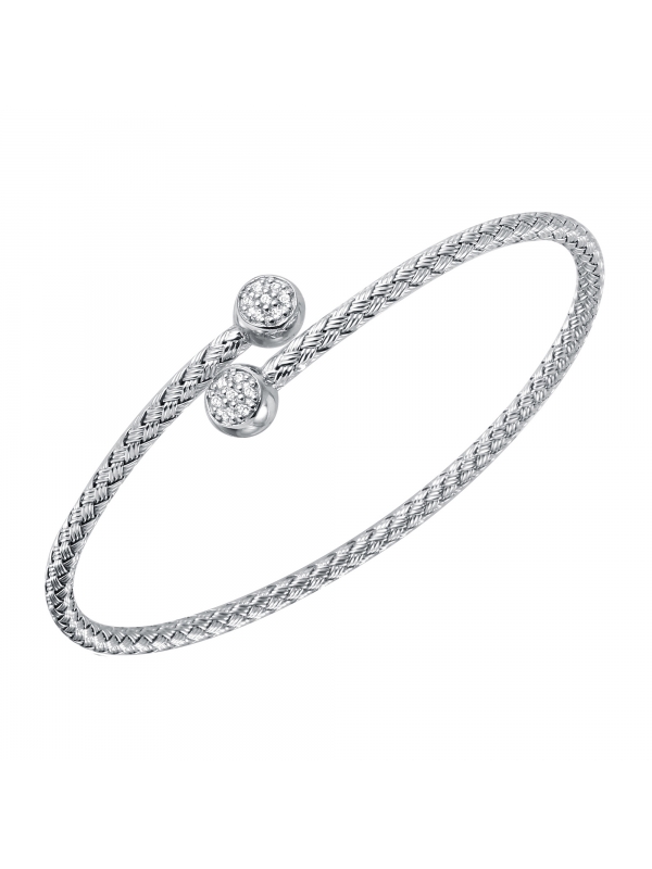 925 SS 3MM WOVEN ROUND BYPASS CZ BAR CUFF RHODIUM FINISH