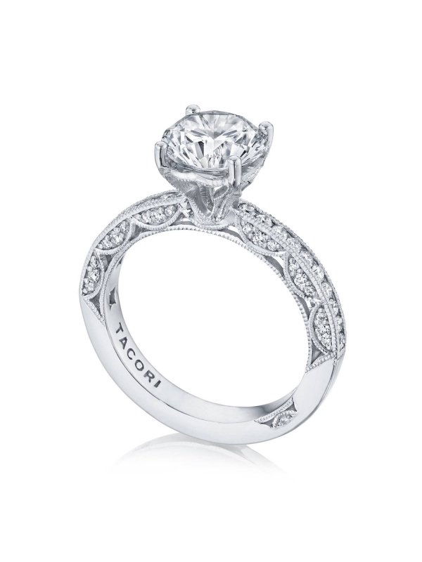 Three diamonds are set within each Classic Crescent in this band to represent your past, present, and future. The open gallery of the Classic 360 foundation allows you to view the center stone from all angles.