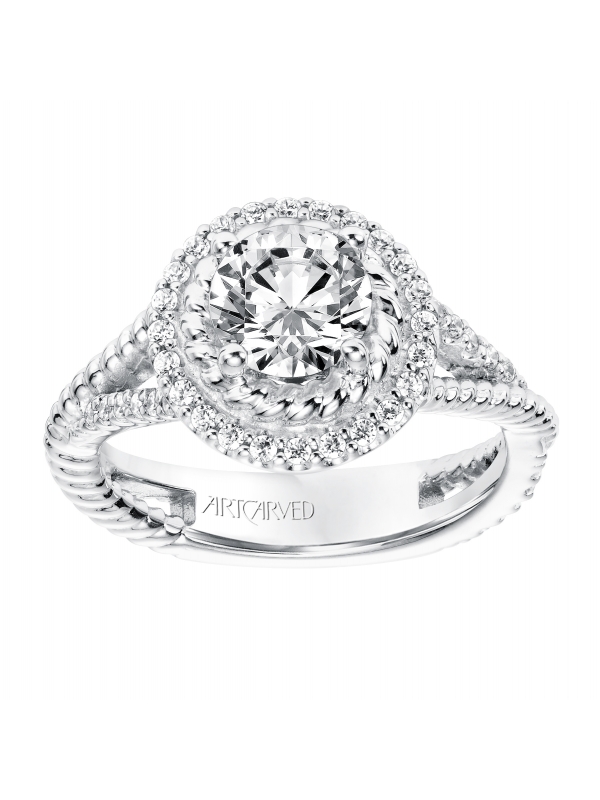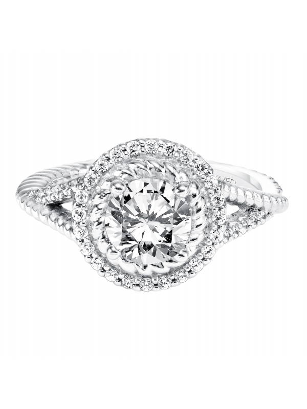 Contemporary Diamond and Rope Halo Engagement Ring with Split Diamond and Rope Shank - Price does not include center stone.