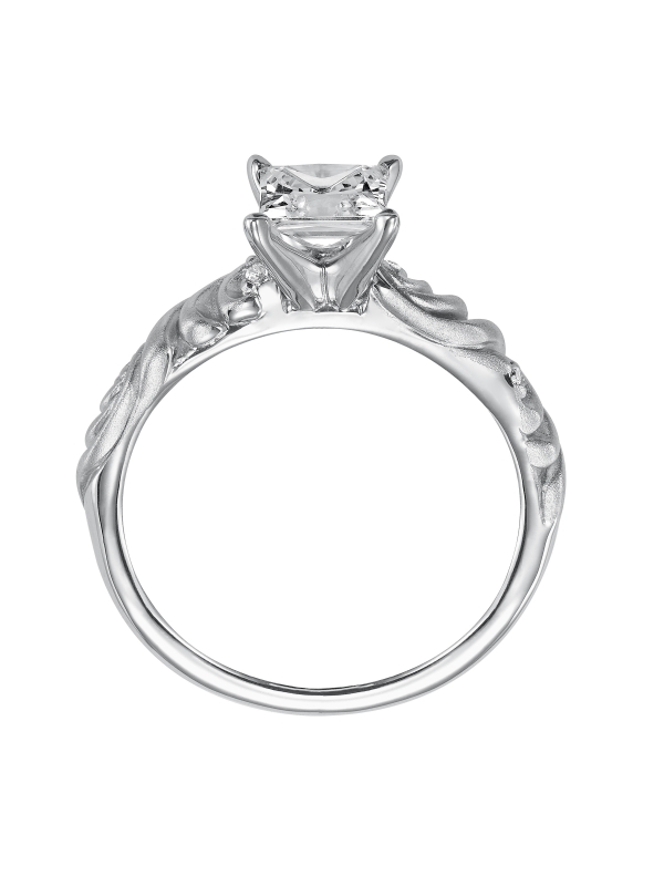 Diamond engagement ring with round center and a satin finished floral carving detail highlighted with diamonds - Price does not include center stone.