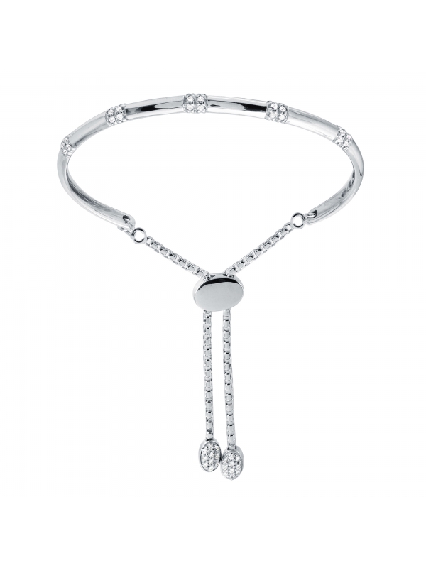 925 SS POLISHED BAR CZ FRIENDSHIP BRACELET RHODIUM FINISH