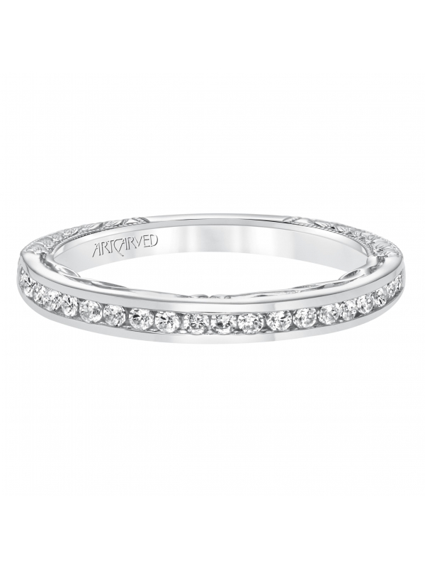 Diamond Hand Engraved and Milgrain Wedding Band - Price does not include center stone.