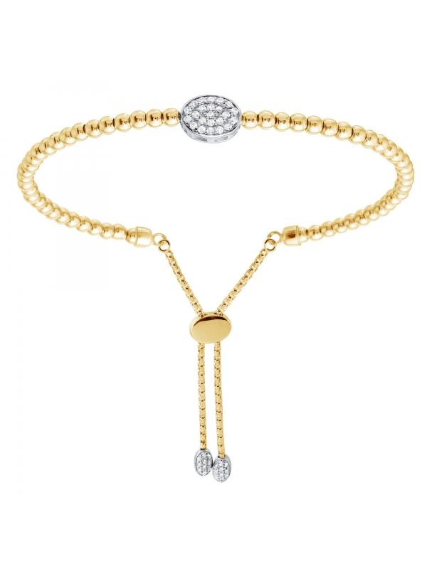 925 SS OVAL CZ AND BEAD FRIENDSHIP BRACELET 18K YG AND RHODIUM FINISH