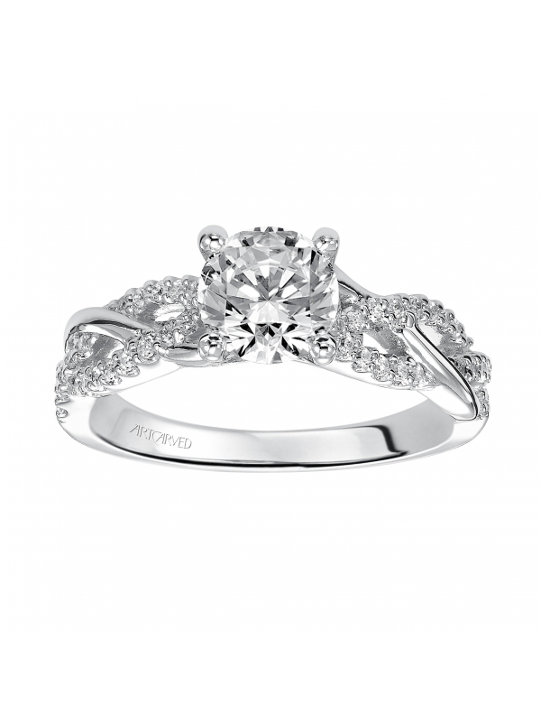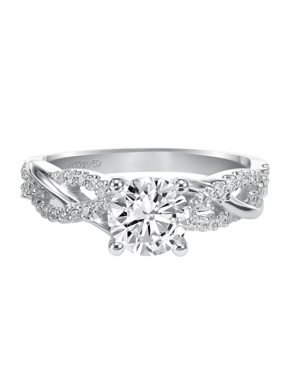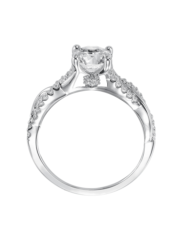 Diamond engagement ring with prong set round diamond and high polished woven designed setting. - Price does not include center stone.