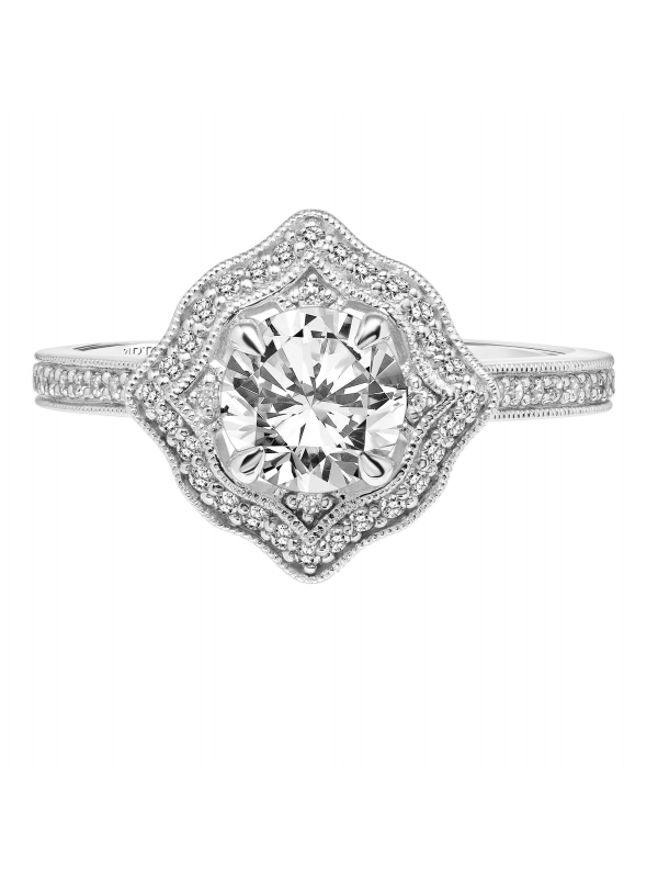 Vintage Diamond Engagement Ring with Milgrain Accented Diamond Halo and Milgrain Accented Diamond Shank - Price does not include center stone.